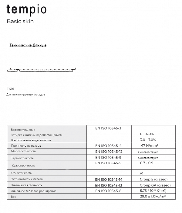 Керамическая плитка для вентилируемого фасада, система FKL 1/16, Tempio